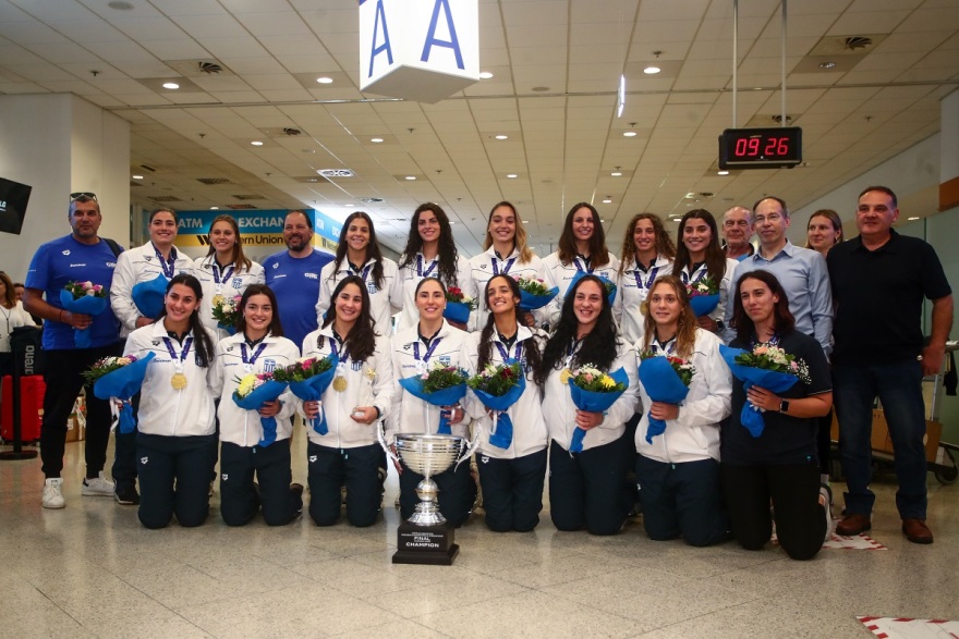 Το πρωί της Δευτέρας του Πάσχα (21/4) επέστρεψαν στην Αθήνα τα «χρυσά» κορίτσια της Εθνικής ομάδας πόλο γυναικών μια ημέρα μετά την κατάκτηση της κορυφής του κόσμου και της πρώτης θέσης στο World Cup της Κίνας.
