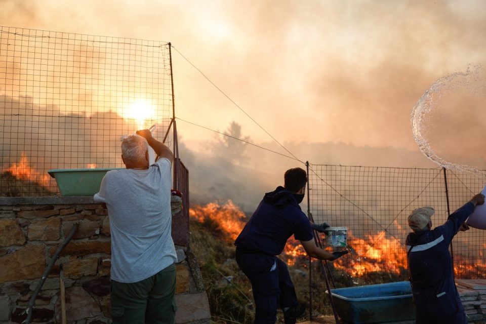 Κατά τη διάρκεια της νύχτας, δεκάδες πυροσβέστες, εθελοντές και κάτοικοι προσπάθησαν να περιορίσουν την καταστροφή, δίνοντας μάχη με τα μέτωπα της φωτιάς.