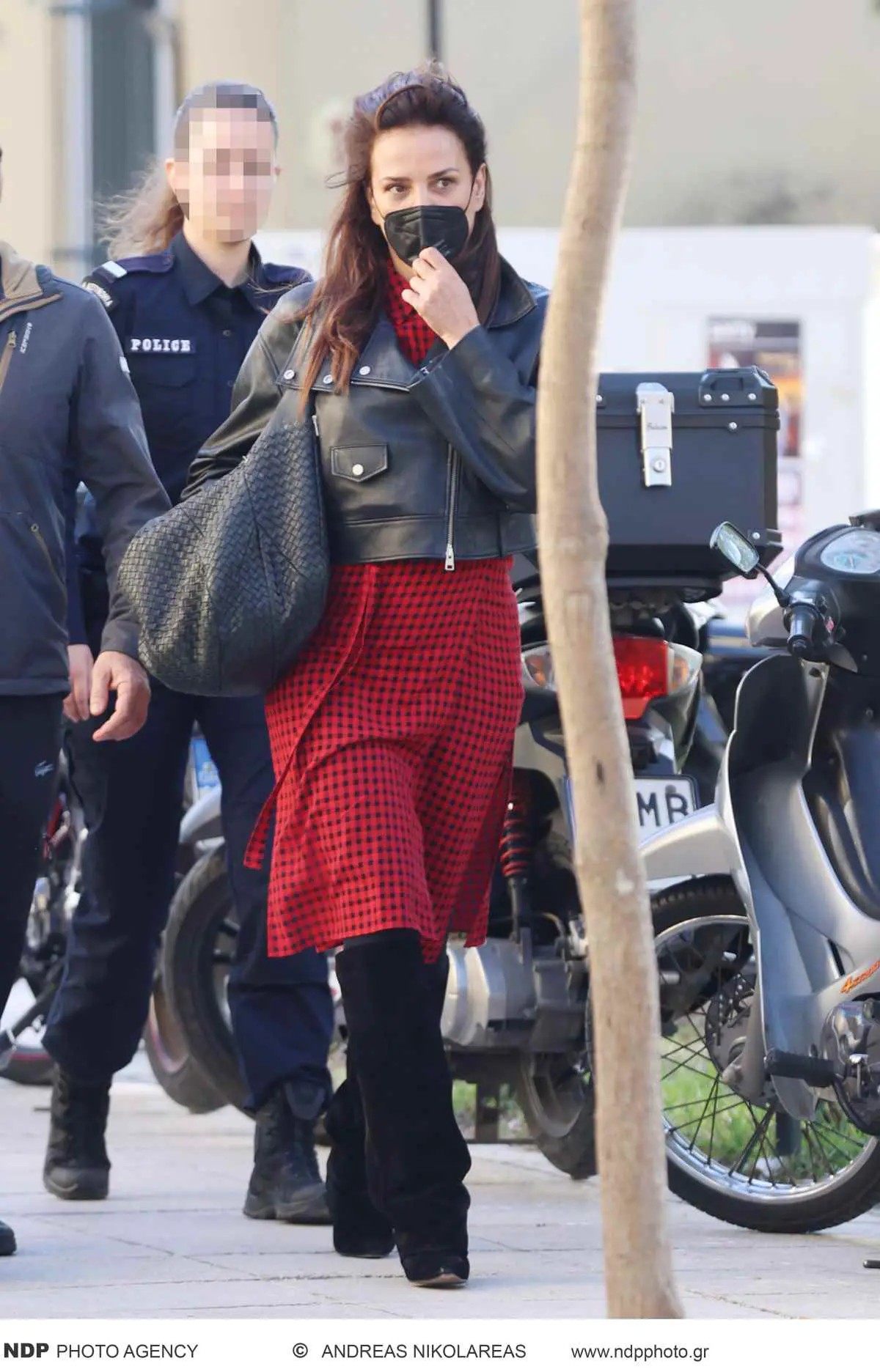 Η ίδια πέρασε τις πόρτες της Ευελπίδων φορώντας μάσκα και καλύπτοντας τις χειροπέδες που της είχαν φορέσει με ένα δερμάτινο μπουφάν. Όπως θα δείτε στις παρακάτω φωτογραφίες, οι οποίες τραβήχτηκαν αφού αφέθηκε ελεύθερη, η ίδια έδειχνε αρκετά καταβεβλημένη. Η ηθοποιός αποχώρησε από το σημείο χωρίς να κάνει δηλώσεις στους δημοσιογράφους.