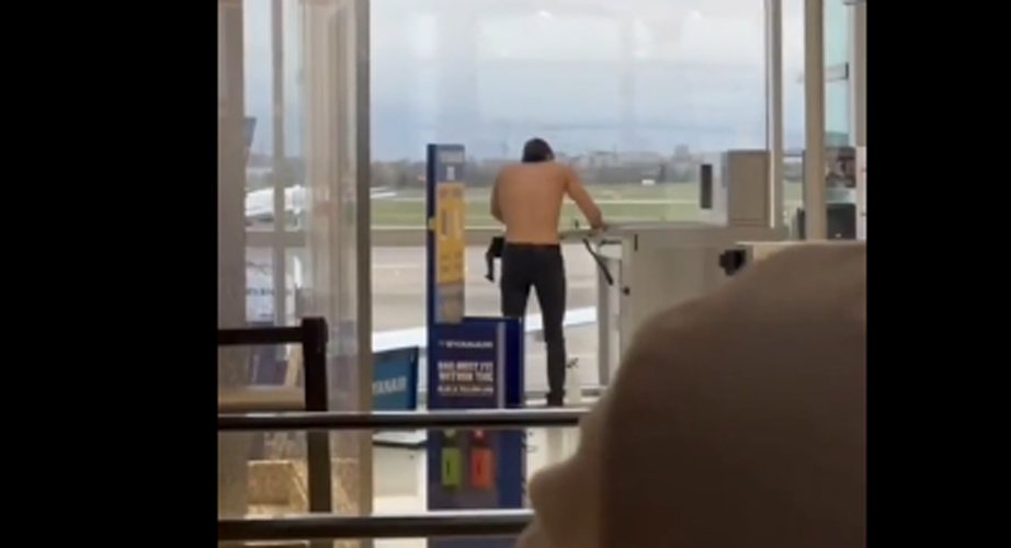 Στην κορύφωση της εκτόνωσής του, κλώτσησε έναν υπάλληλο ελέγχου αποσκευών της Ryanair, προκαλώντας σοκ στους παρευρισκόμενους. Τα έπιπλα του αεροδρομίου βρέθηκαν διασκορπισμένα σε όλο τον τερματικό σταθμό.