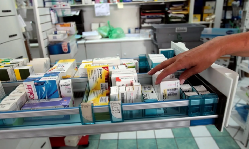 Φαρμακοποιός: Στο ιατρείο. Να σου δώσω λίγο αυτά τα πράγματα να μας μαζέψεις το, του;