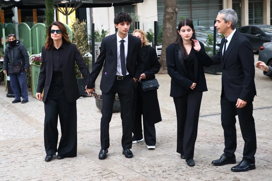 Από νωρίς κατέφτασαν στην Μητρόπολη η κόρη της Μαρινέλλας, Τζωρτζίνα Σερπιέρη με τα δύο παιδιά της.
