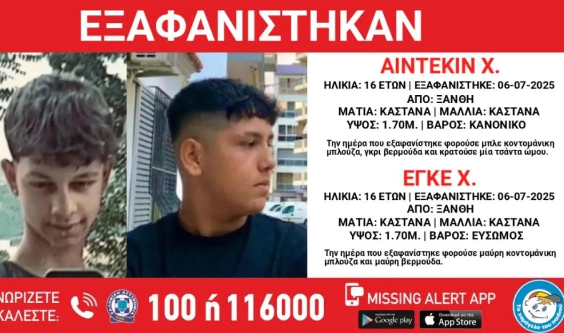 Σε τραγωδία κατέληξε η υπόθεση εξαφάνισης των δύο 16χρονων αγοριών στην Ξάνθη, καθώς το απόγευμα της Δευτέρας ανασύρθηκαν νεκρά από την κοίτη του ποταμού Κόσυνθου.