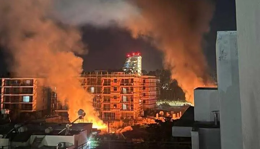 Ο ουρανός γέμισε φλόγες και πυκνούς μαύρους καπνούς, θέτοντας τις αρχές της πόλης σε συναγερμό.