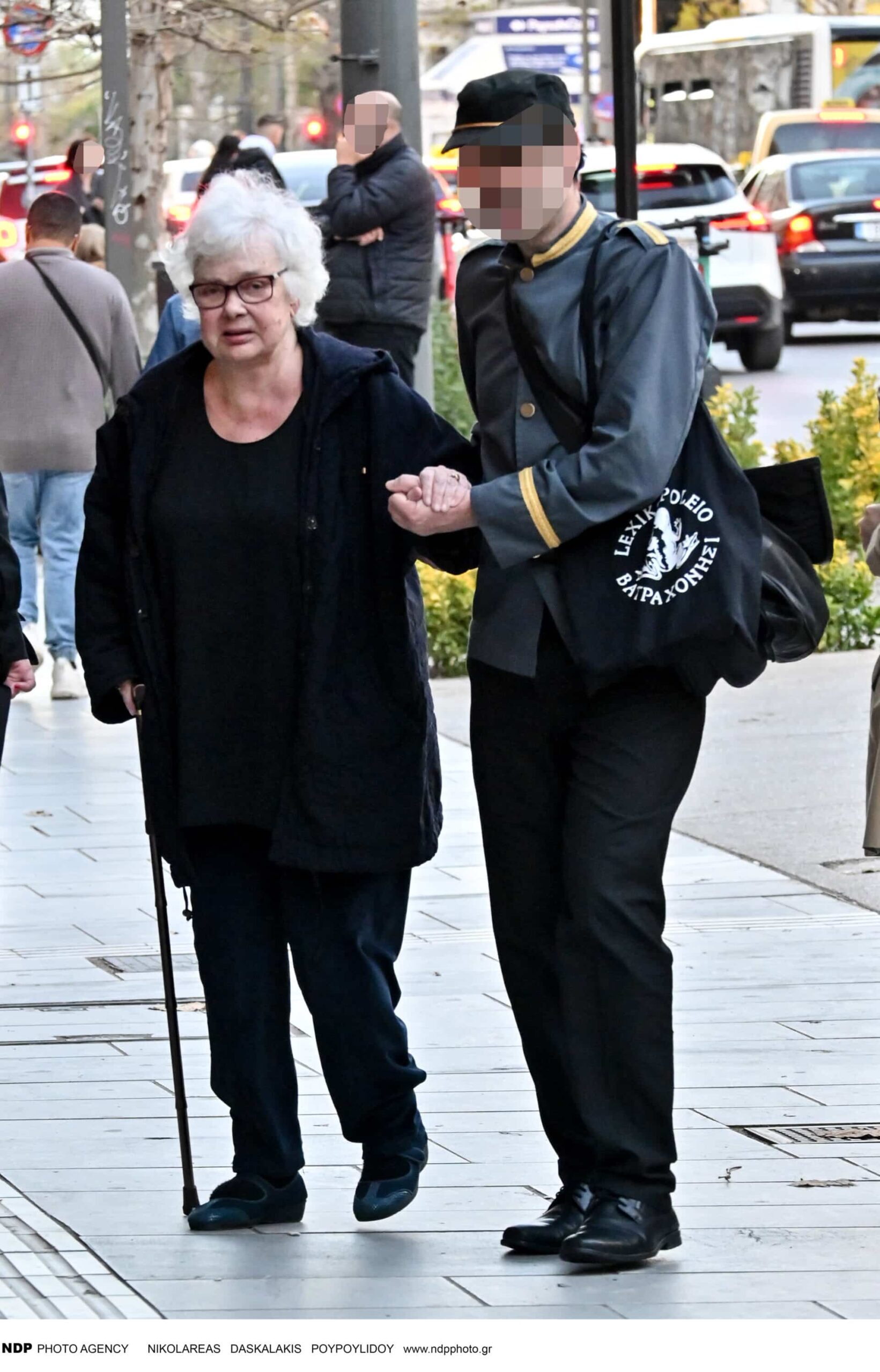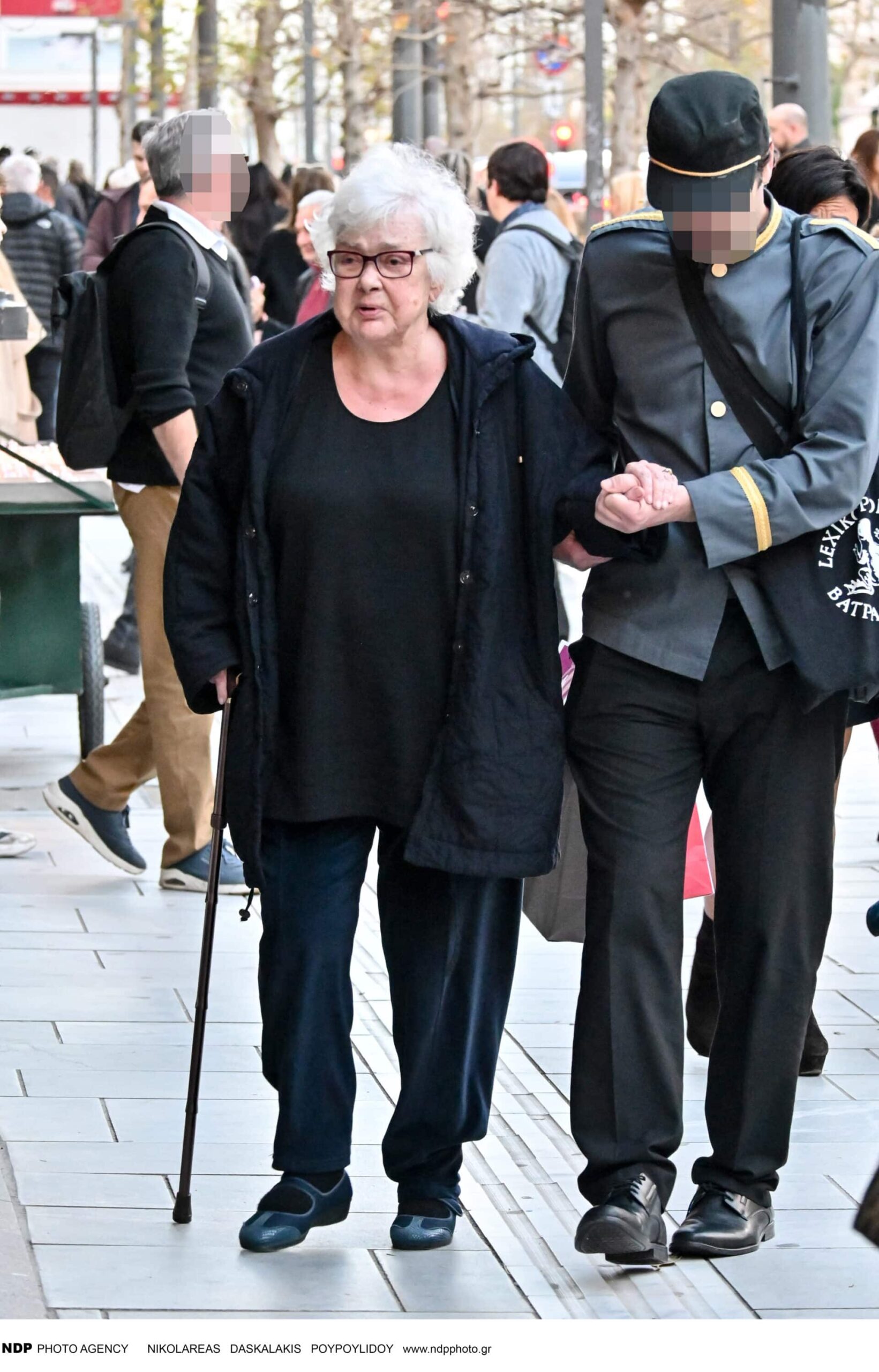 Ντυμένη στα μαύρα, η 89χρονη ηθοποιός περπατούσε χρησιμοποιώντας το μπαστούνι της, ενώ στο πλευρό της βρισκόταν ένας άνδρας που τη συνόδευε κατά τη διάρκεια της εξόδου της.