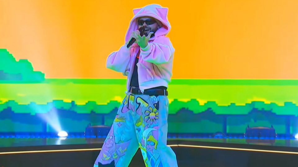 Ο Akylas τραγούδησε στο PZE26 με ροζ ζακέτα, τον χαρακτηριστικό σκούφο που φοράει, μαύρα γυαλιά ηλίου, όπως στον ελληνικό τελικό, και πολύχρωμο τζιν παντελόνι.