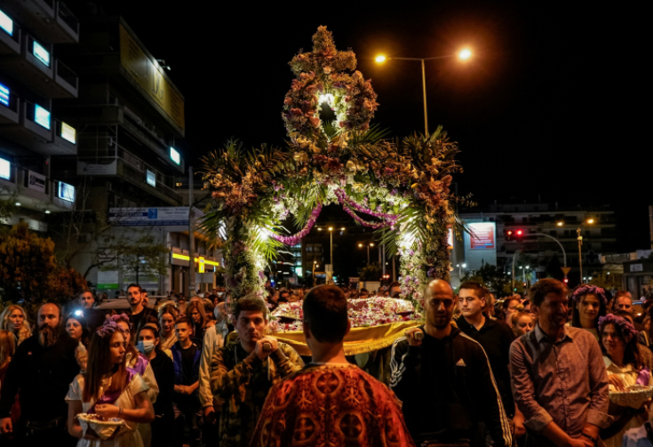 Σε κάθε γωνιά της Ελλάδας, οι γυναίκες, το βράδυ της Μεγάλης Πέμπτης μέχρι τα ξημερώματα της Μεγάλης Παρασκευής, στολίζουν με λουλούδια τον επιτάφιο, δημιουργώντας μία μοναδική σύνθεση.