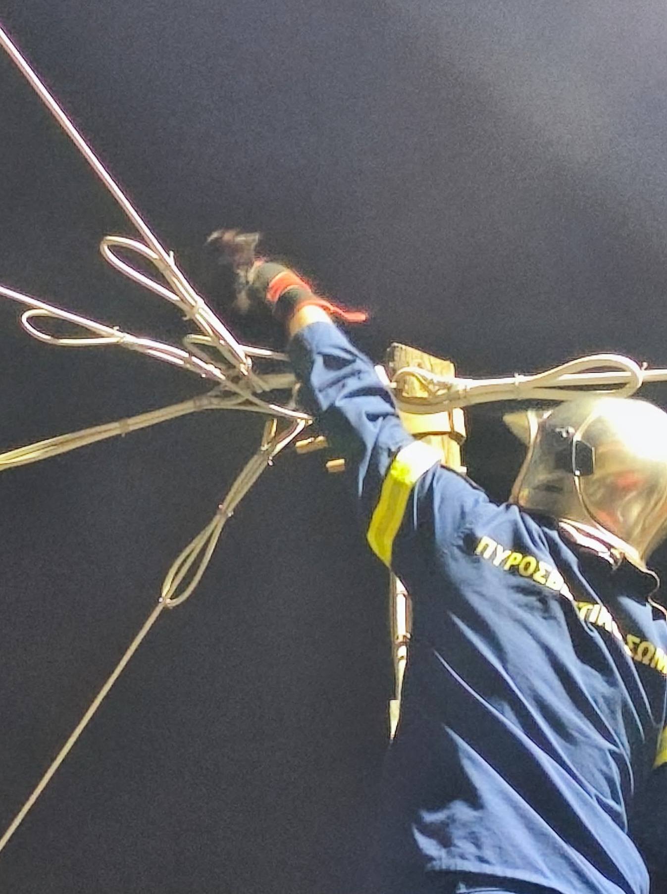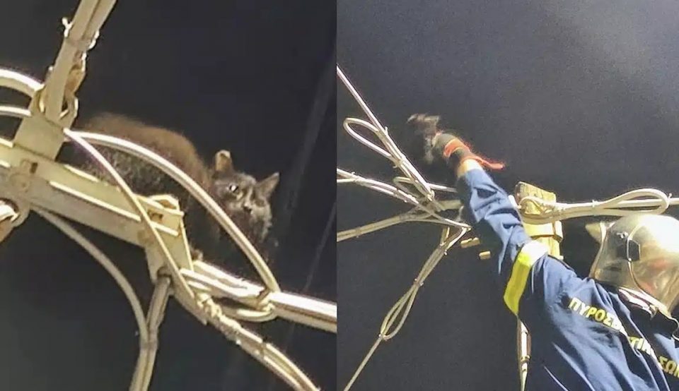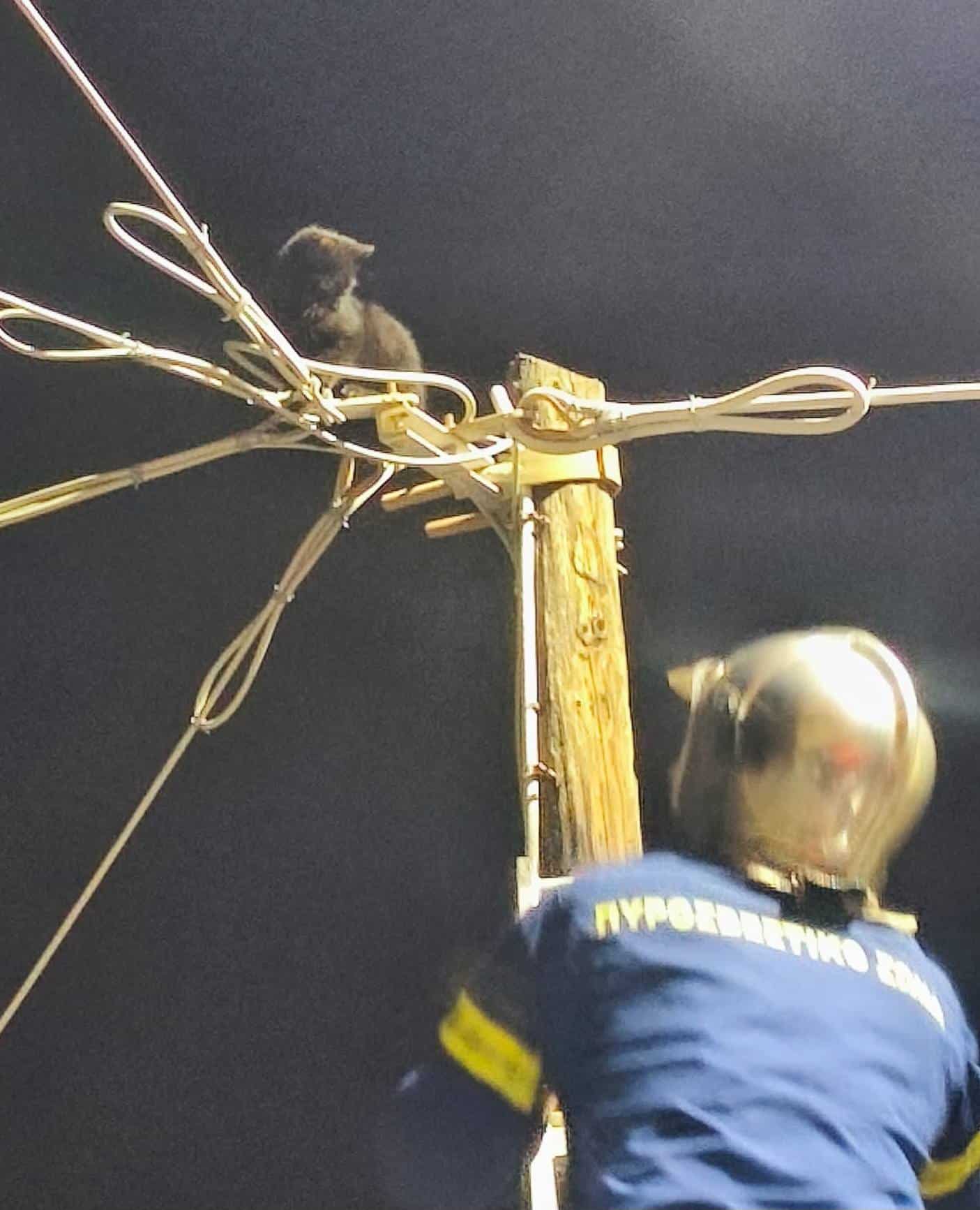 Πυροσβέστες έσωσαν γατάκι που είχε σκαρφαλώσει σε κολώνα του ΟΤΕ
