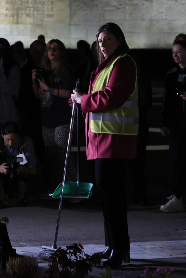 Ο Πάνος Ρούτσι με τη Ζωή Κωνσταντοπούλου καθάρισαν το αυτοσχέδιο μνημείο στον Άγνωστο Στρατιώτη