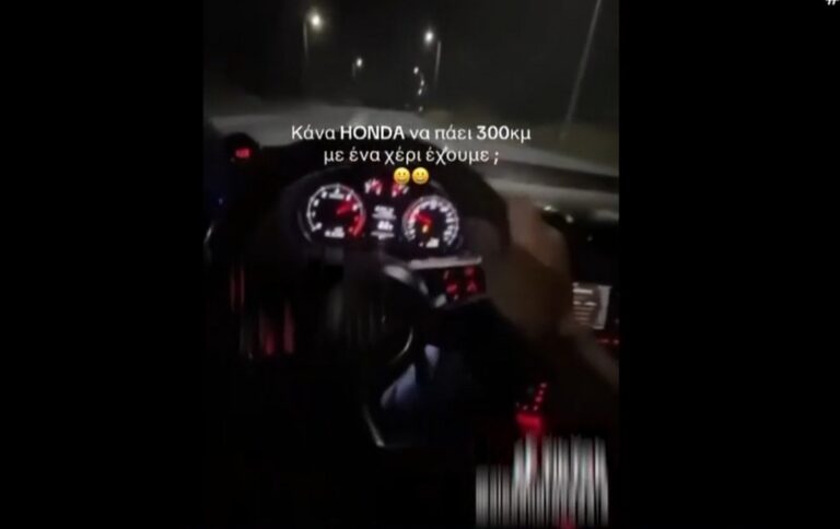 Μάλιστα, ο συγκεκριμένος άνδρας – ο οποίος έχει αναρτήσει και άλλα τέτοια βίντεο- δημοσίευσε στο TikTok ένα βίντεο γράφοντας στην λεζάντα «Κανά Honda να πάει 300χλμ με ένα χέρι έχουμε;», ενώ στο στιγμιότυπο φαίνεται να αναπτύσσει υπερβολική ταχύτητα και να κρατάει με το ένα χέρι το κινητό τηλέφωνο.