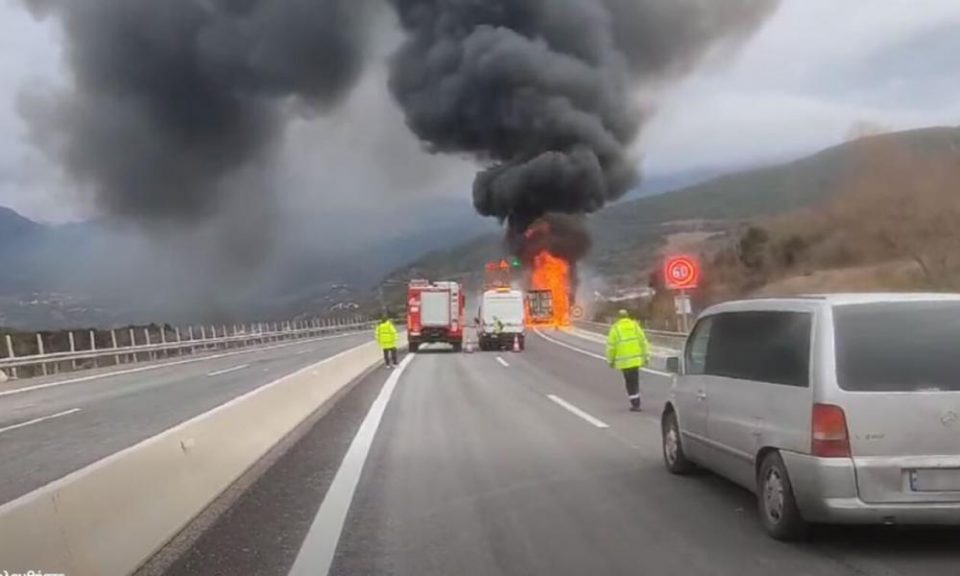 Φορτηγό τυλίχθηκε στις φλόγες στην Εγνατία Οδό [ΒΙΝΤΕΟ]